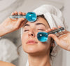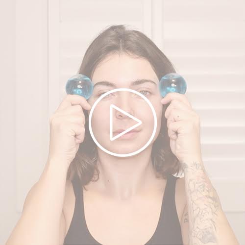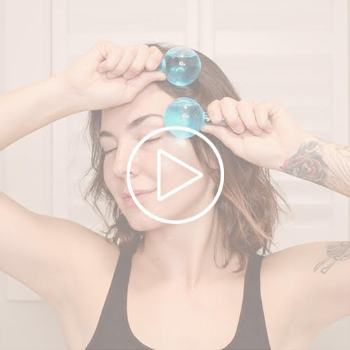 Glide or roll globes over the face in slow, gentle movements, taking time to pause on the eye area and in areas with more inflammation or breakouts, allowing them to cool and calm any redness.